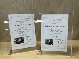 ワールド・ビジョン・ジャパン様より感謝盾をいただきました