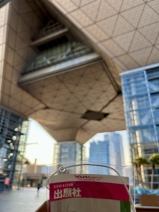 ↑東京ビッグサイトをバックに出展社証を撮影しました!