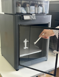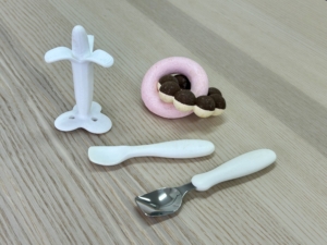 ↑3Dプリンターから試作品を取り出す様子を再現!🍌
